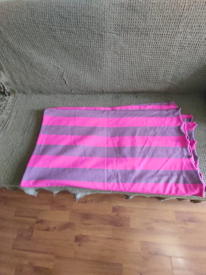 Yumuşak ve sıcak kumaştan yapılmış, pembe ve gri çizgili battaniye,yatak örtüsü çok amaçlı kullanılabilir boy :2.10 en :2,10