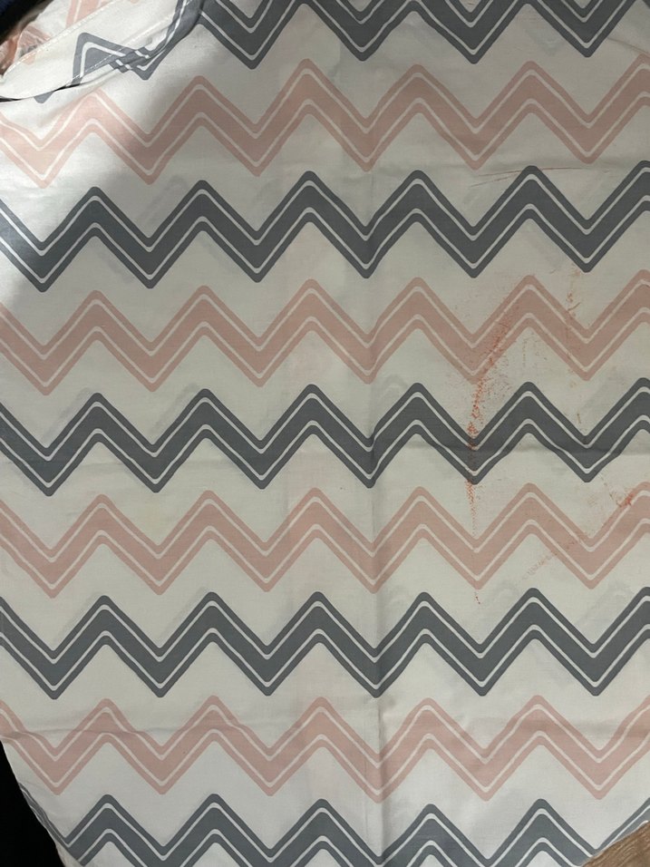 Pembe ve gri çizgilerle bohem tarzda emzirme önlüğü