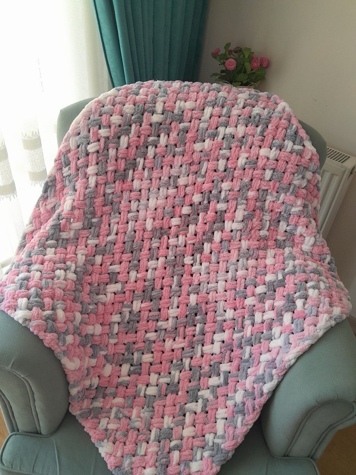 Hazır örülmüştür, Hemen kargoya verilir. Pembe ve gri tonlarda, yumuşak örgü dokulu çocuk battaniyesi, rahatlık ve sıcaklık sunar. Desensiz tasarımıyla her çocuk odasına uyum sağlar.