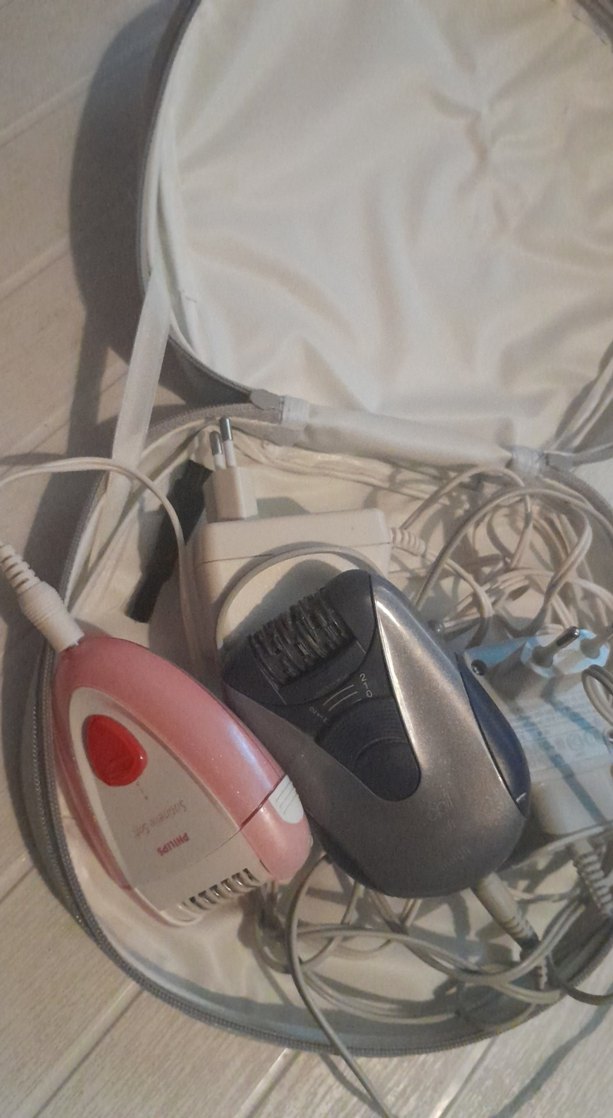 Pembe ve gri renklerde, kablolu iki epilatörden oluşan set. Çoklu cımbızlarla tüy alma için tasarlanmıştır. ⚡elektrikli sorunsuz çalışıyor goründüğü gibi toplam fıyatidır çanta ile birlikte gelicek