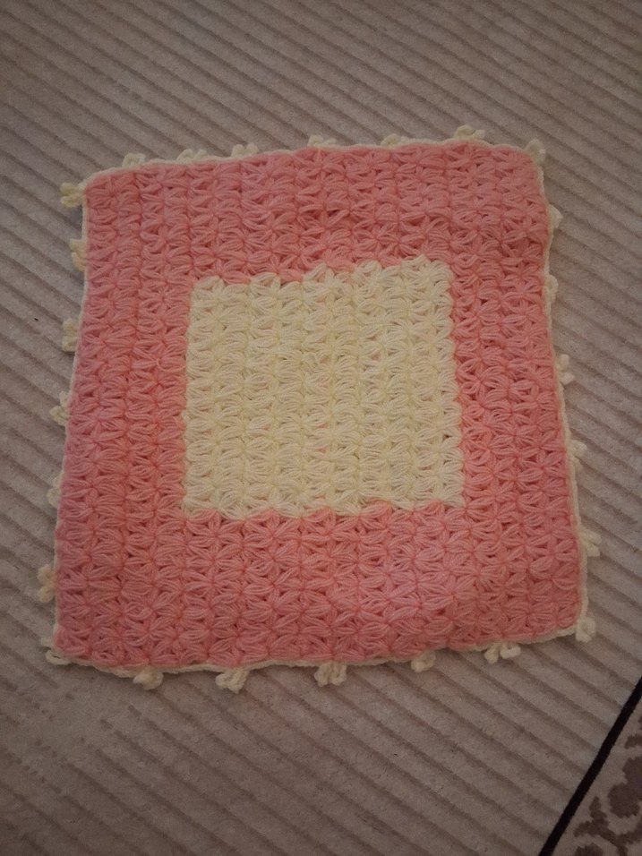 Pastel pembe ve krem renkli, dokulu örgü desene sahip banyo süngeri. Yumuşak ve nazik kullanım sağlar.