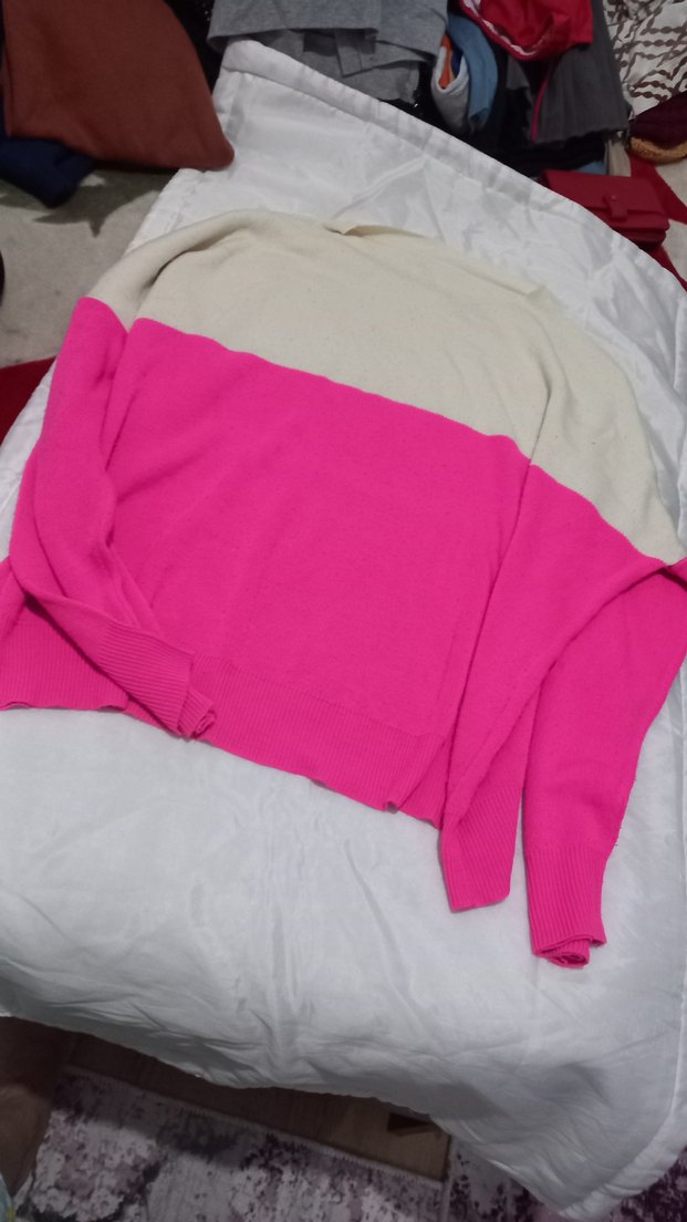 Pembe ve Krem Renkli Kadın Triko Kazak