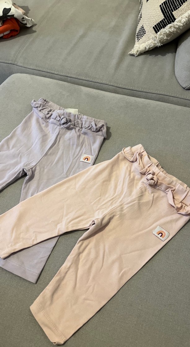 Gökkuşağı deseni etiketli,bel kısmı fırfır ve kurdele detaylı kız bebek tayt seti 3-6 ay