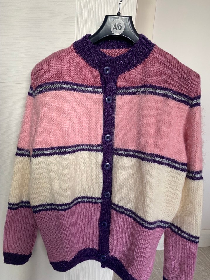 Pembe ve Mor Renkli Örgü bayan Hırka