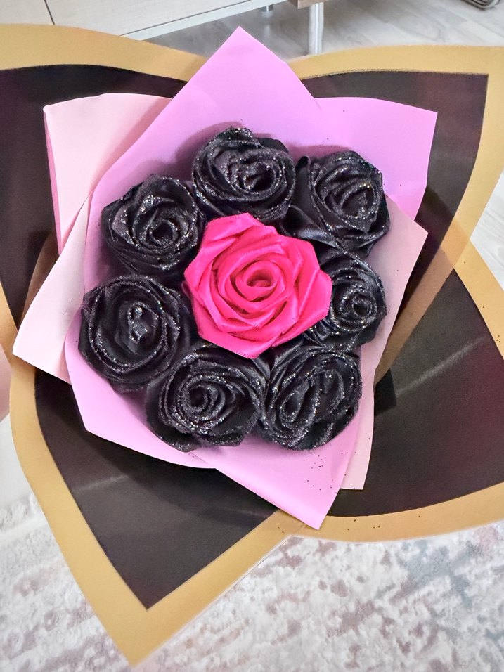Pembe ve Siyah Gül Buketi