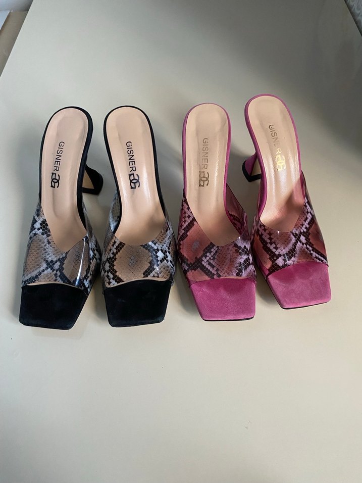 Pembe ve Siyah Yılan Desenli Topuklu Terlik