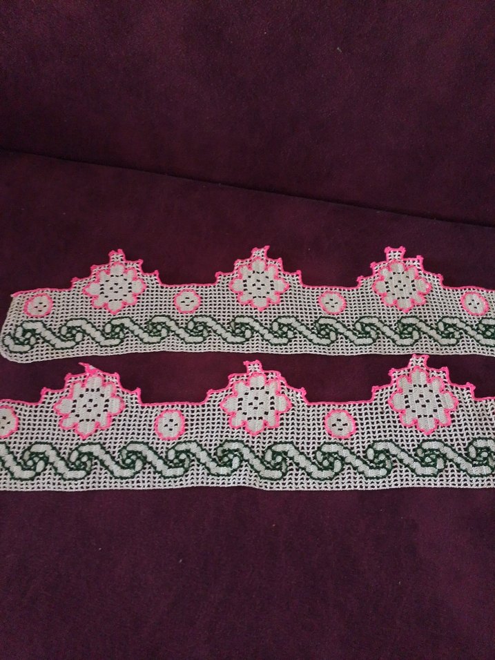 Pembe ve yeşil işlemeli dantel şerit
