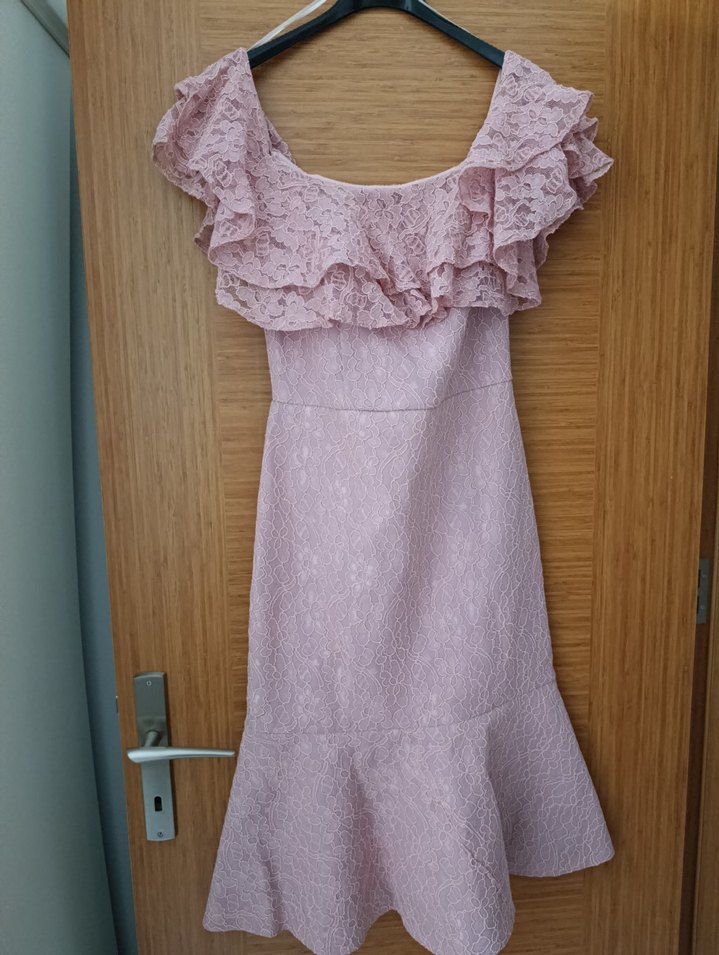 Pembe Vintage Dantelli Uzun Abiye Elbise - Görsel 1