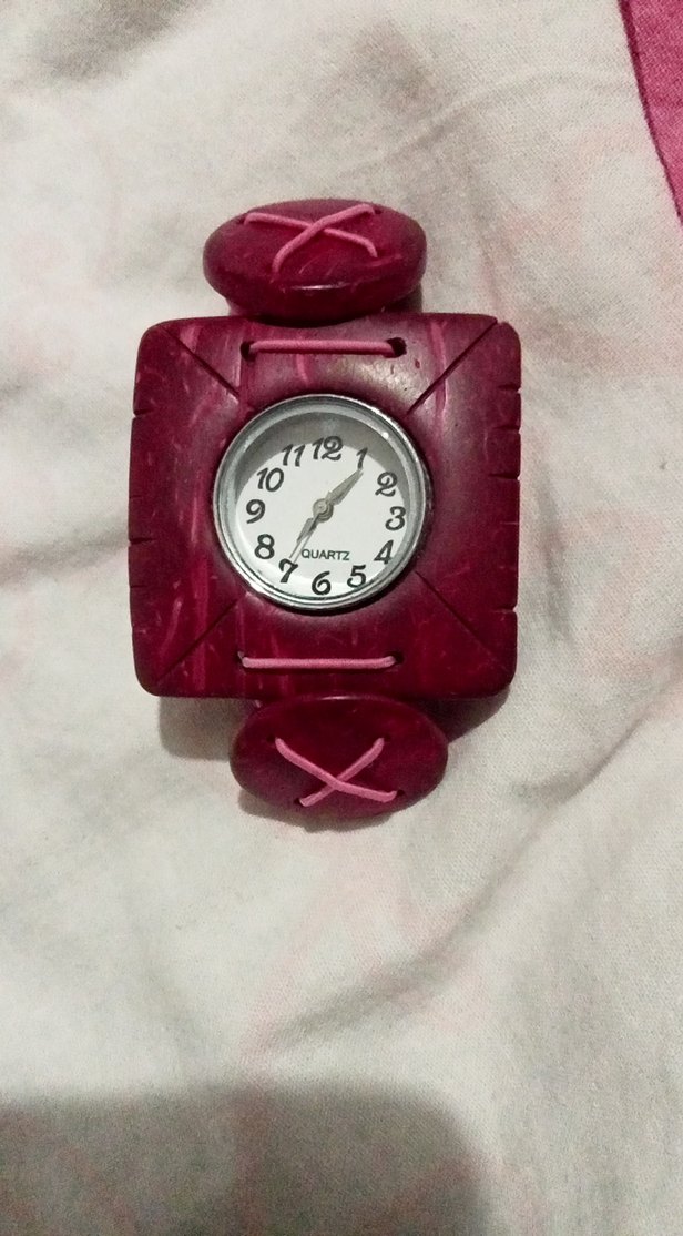 Renkli pembe kadın kol saati, tokalı kayış ve vintage bohem tarzıyla öne çıkar. Kadranda quartz mekanizma ve net rakamlar bulunur. ⌚