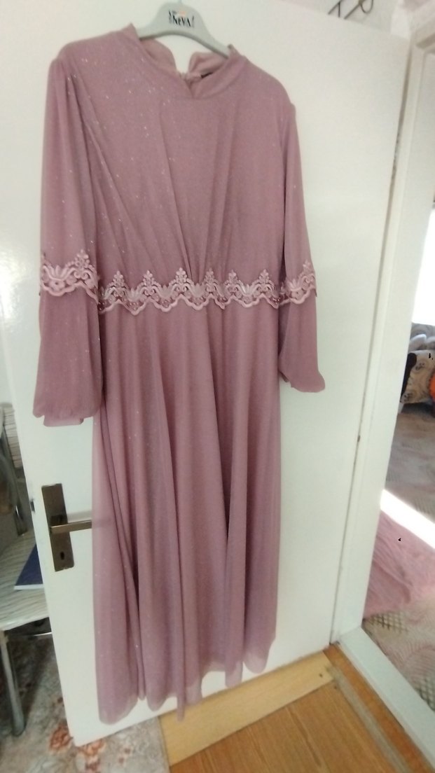 Pembe Vintage Uzun Kadın Abiye Elbise