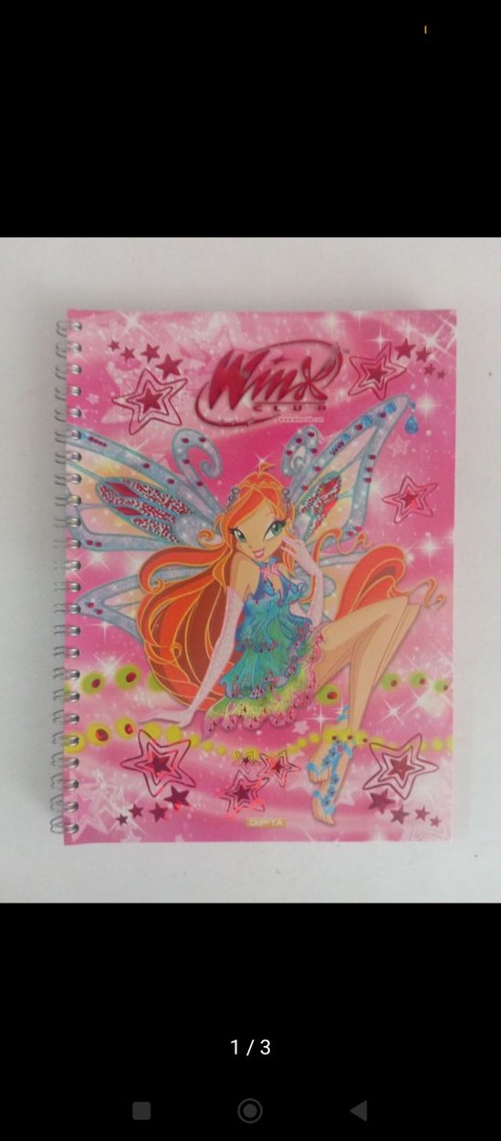 Renkli pembe kapaklı, Winx perisi desenli spiral bağlamalı defter. ✨