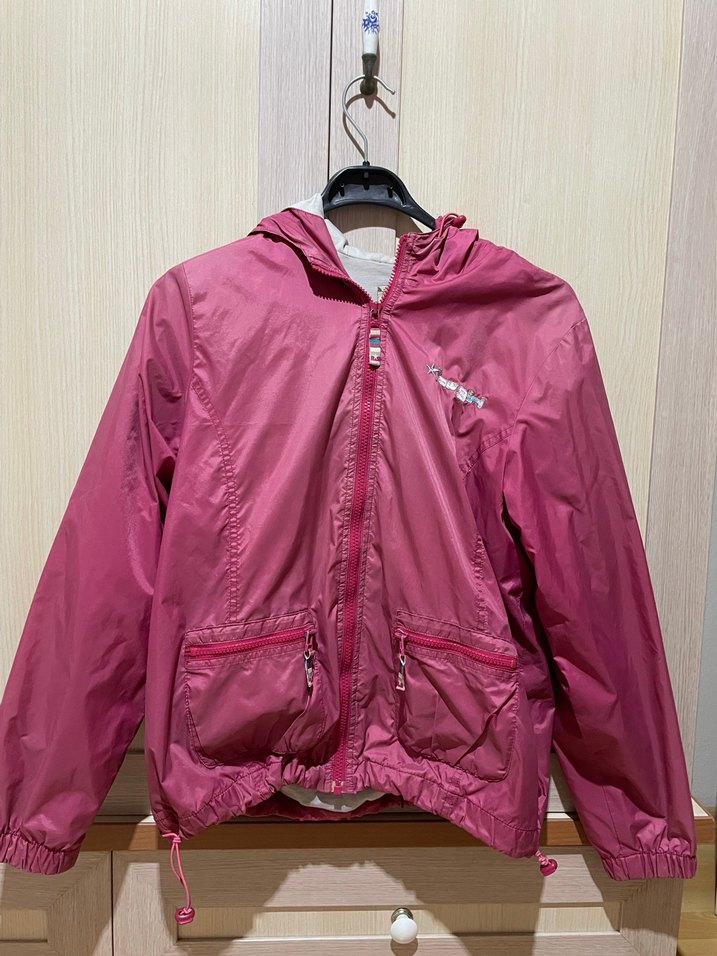 pembe renkte, fermuarlı cepli, notched yaka ve uzun kollu, rahat kesim midi uzunlukta kadın ceket. Sentetik kumaştan, dış mekan ve athleisure tarzına uygun.