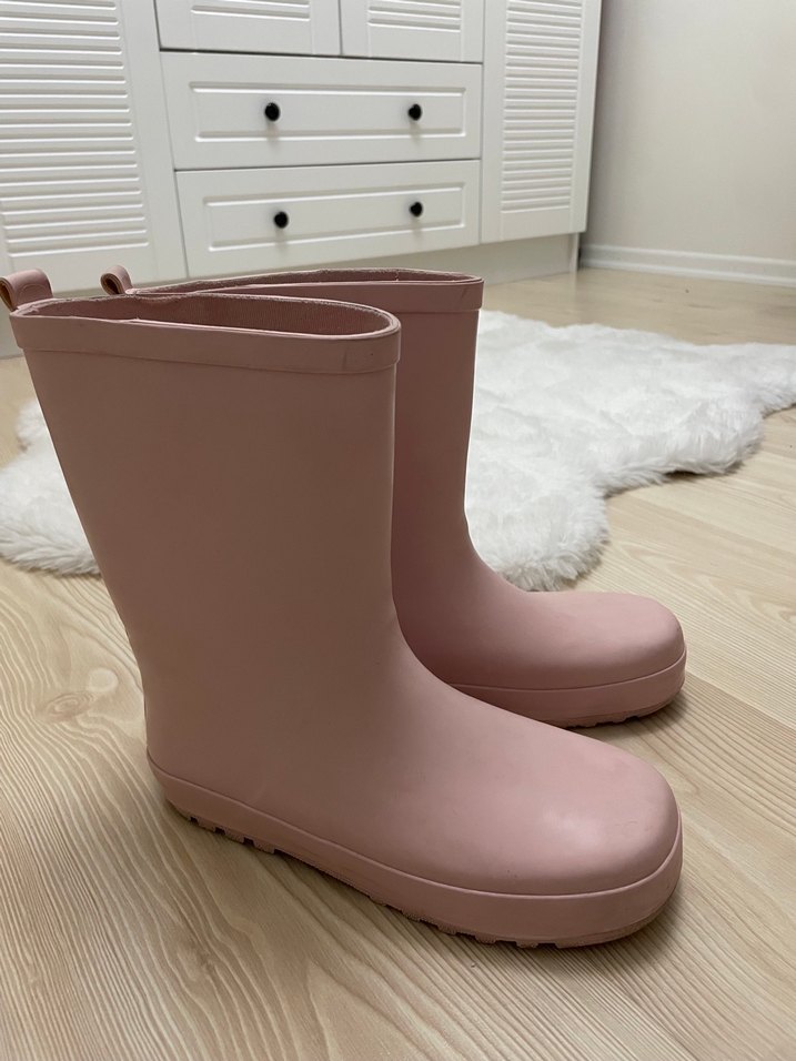 Kız çocukları için pastel pembe renkte, lastik malzemeden yapılmış, desensiz ve normcore tarzında rahat çizme.