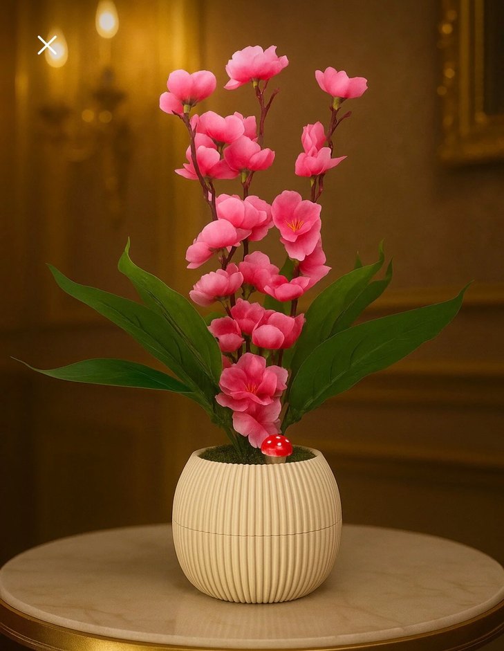 Pembe Yapay Çiçekli Dekoratif Saksı