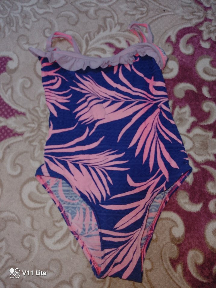 Pembe Yaprak Desenli Fırfırlı Kadın Mayo