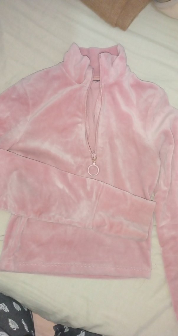 Pembe Yarım Fermuarlı Sweatshirt