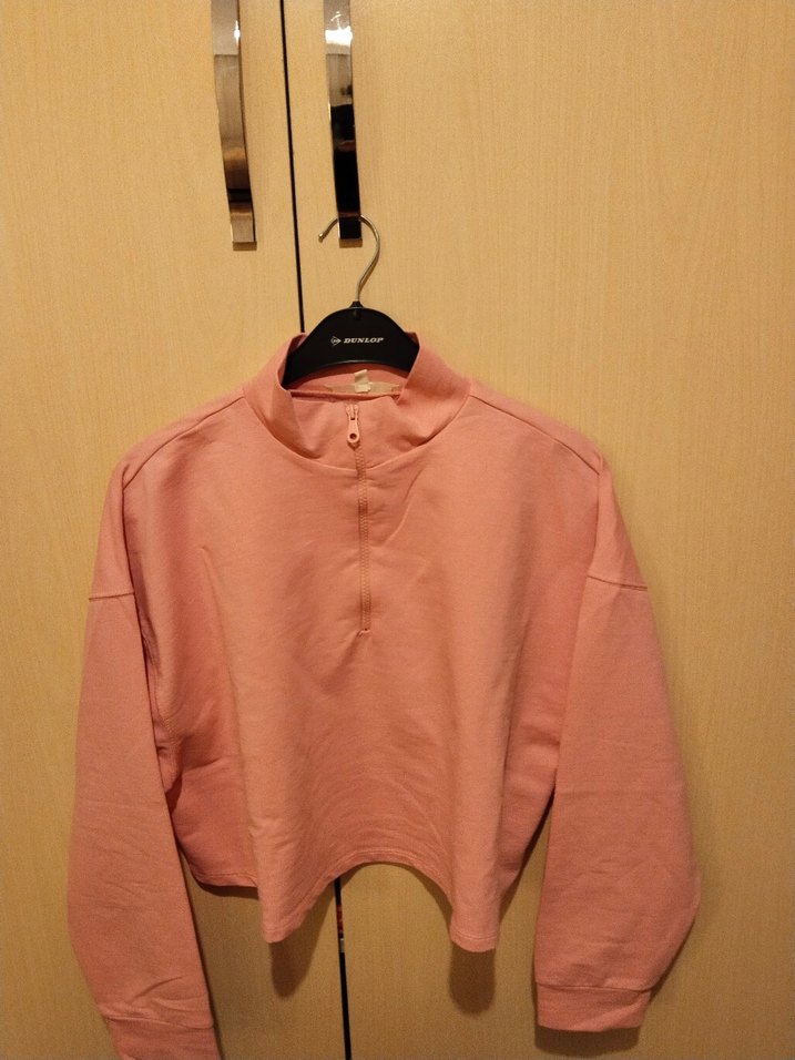 Yarım fermuarlı, yüksek yakalı, bol kesim pembe sweatshirt, yumuşak ve sıcak kumaştan üretilmiştir. Günlük sokak stiline uygundur.