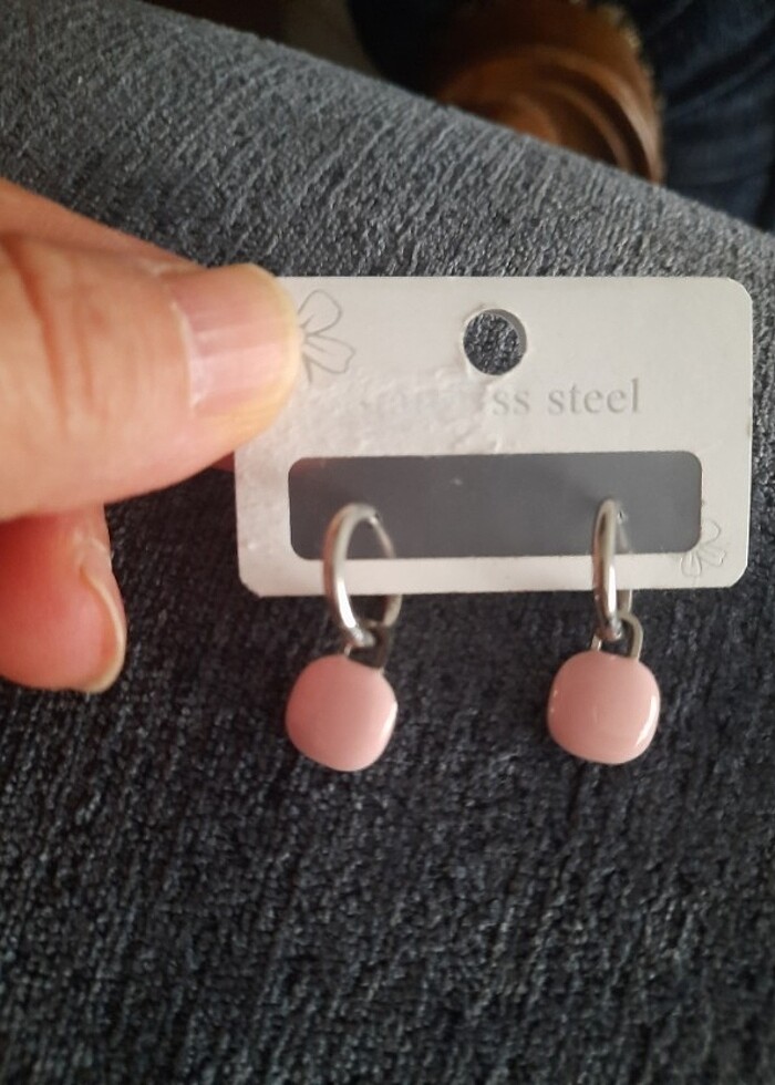 Pembe Yeşil Mineli Yazlık çelik küpeler