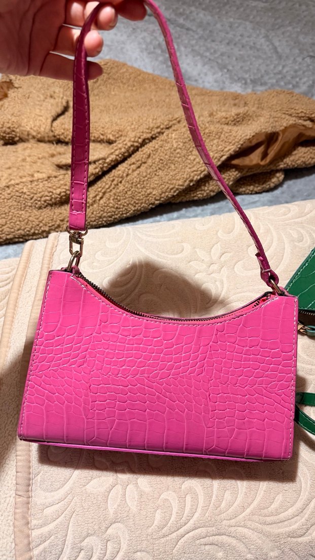 Pastel pembe yılan derisi desenli deri çanta, fermuarlı kapama ve bohem tarzıyla günlük sokak modasına uygun.