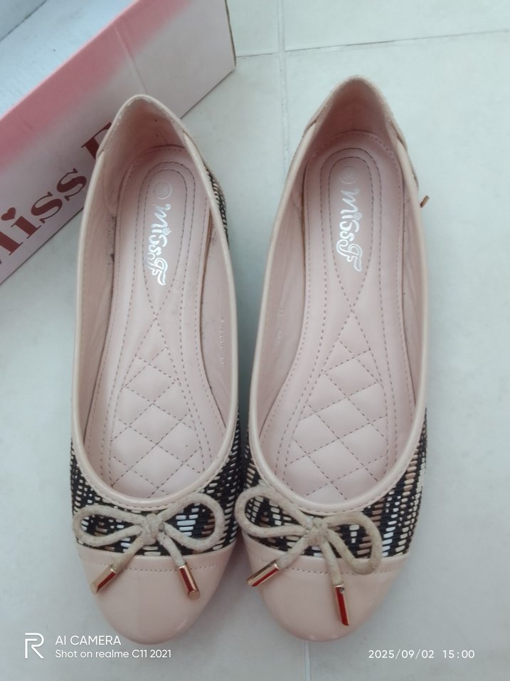 Pembe renkte, yılan desenli ve pilili detaylı dolgu topuklu kadın babet. Kauçuk malzemeden üretilmiş, günlük kullanıma uygun modern ve Paris esintili tarzda.