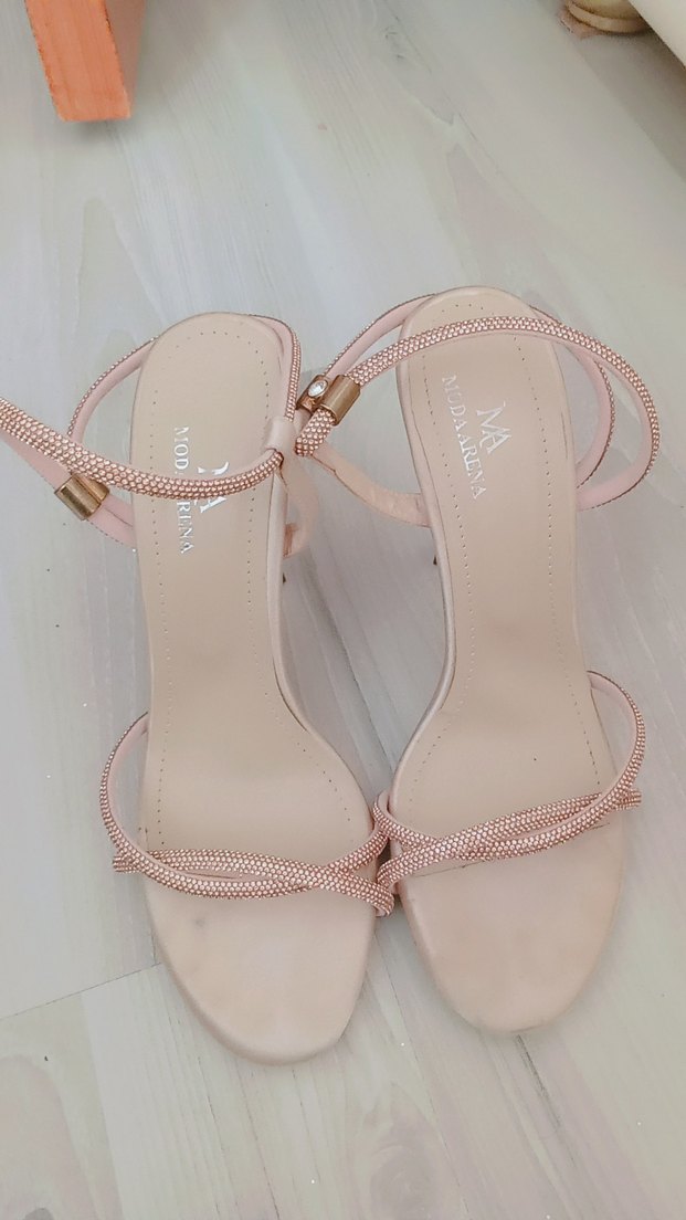 İpek gibi pembe, pastel yılan desenli ince topuklu ve tokalı kayışlı, bohem tarzıyla klasik zarafeti birleştiren kadın ayakkabısı.