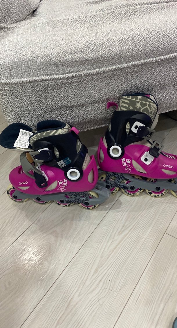 Pembe renkli, yılan desenli kız çocuğu spor patenleri, kolay ayar için cırt cırt bantlı ve kauçuk malzemelidir. Sokak stili ve athleisure için uygundur. 30/32 no