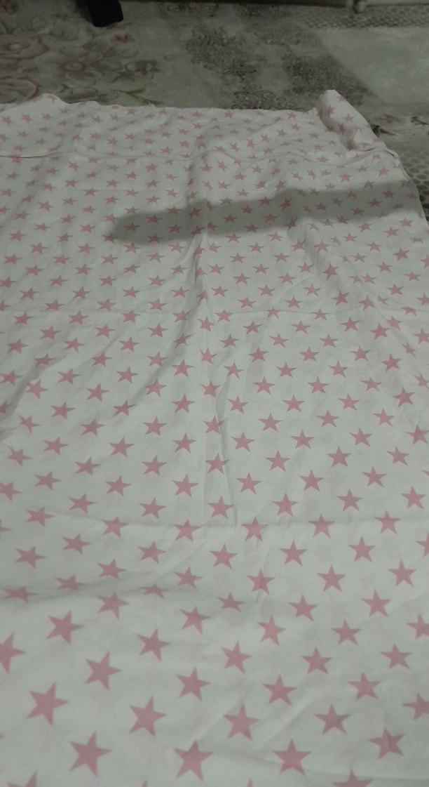 Pastel pembe yıldız desenli, yumuşak pamuklu kumaştan yapılmış çocuk yorgan yüzü sifirdir