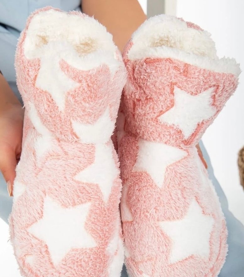 Pembe Yıldız İşlemeli Kadın Ev Terliği