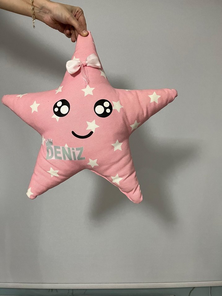 Pastel pembe renkte, yıldız şeklinde peluş oyuncak. Üzerinde beyaz yıldızlar, gülümseyen yüz ve "DENIZ" yazısı ile küçük bir fiyonk bulunur. İsme özeldir marka temsili özel yaptırdım