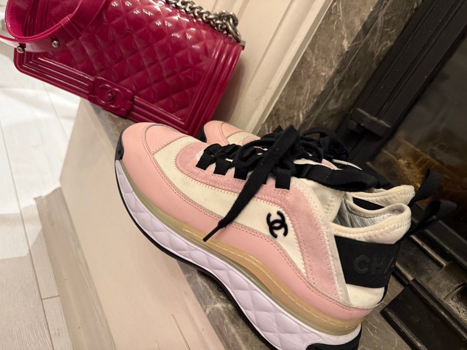 Pembe platform topuklu spor ayakkabılar, Chanel marka ve elastik detaylar ile sokak modasına uygun, kauçuk tabanlıdır. Amerika’dan alındı, Orjinal, pembe çanta hediye olarak gönderilicek. Faturası mevcut değil
