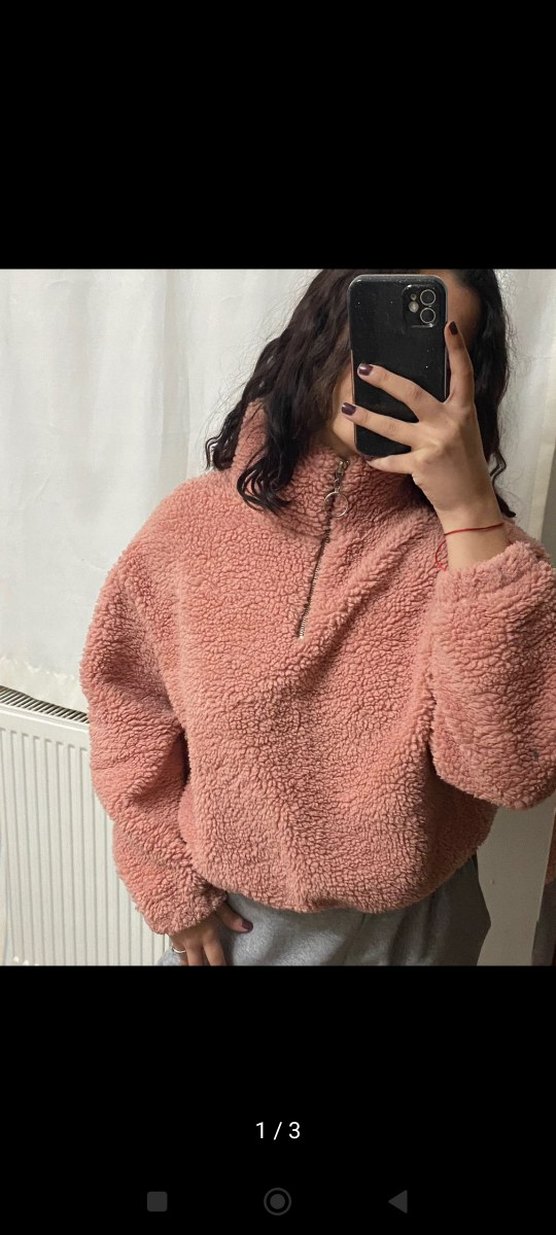 Yumuşak ve sıcak kumaştan, bol kesim, yüksek yaka ve uzun kollu pembe midi uzunluğunda kadın ceket. Kürk detaylı, rahat sokak stili için uygundur. S M uygundur