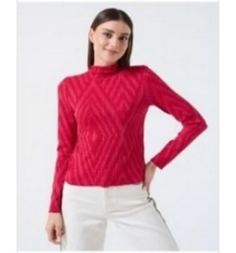 Pembe tonlarında, yüksek yakalı ve uzun kollu ince örgü kadın bluz Günlük kullanıma uygun, modern ve rahat bir tasarıma sahiptir.