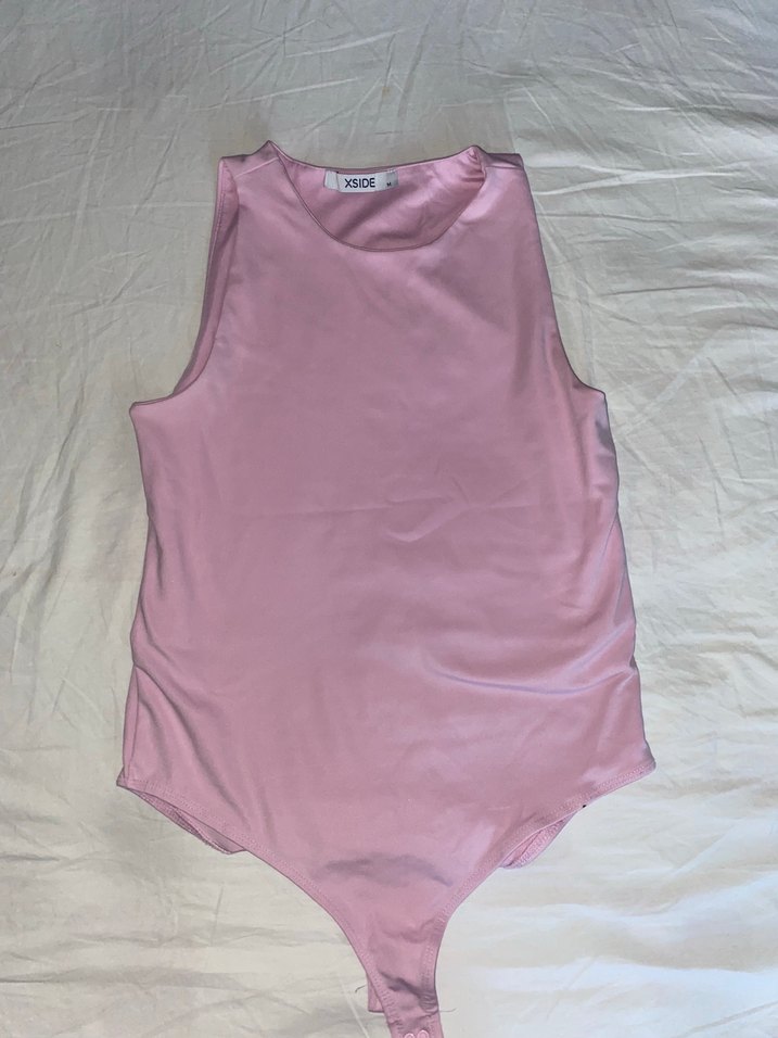 Pembe Yüksek Yakalı Kolsuz Body