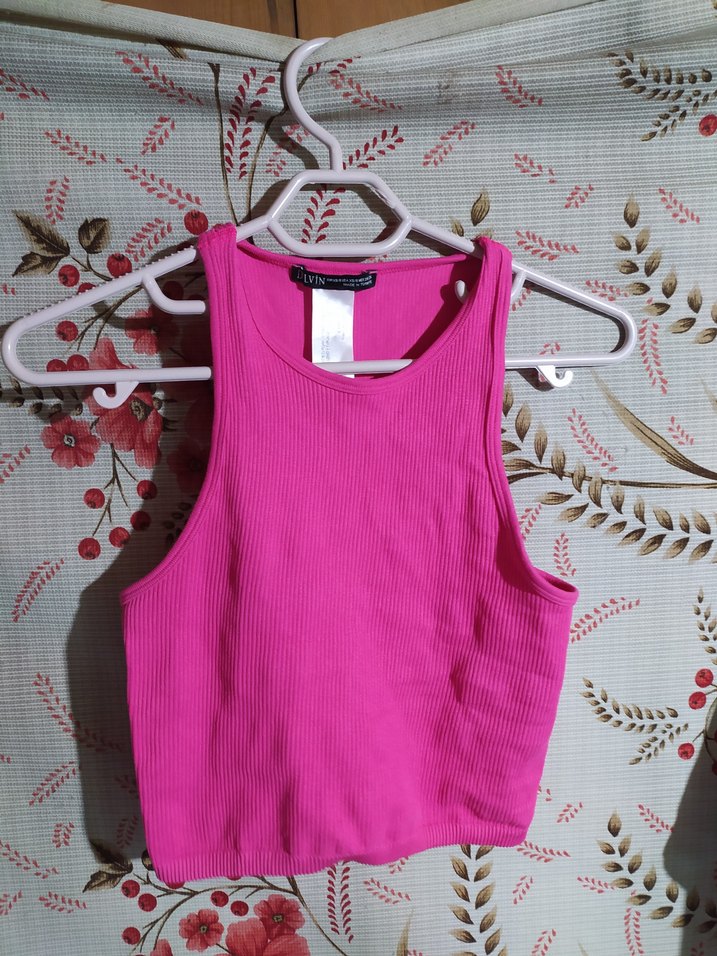 Pembe Yüksek Yakalı Kolsuz Crop Top