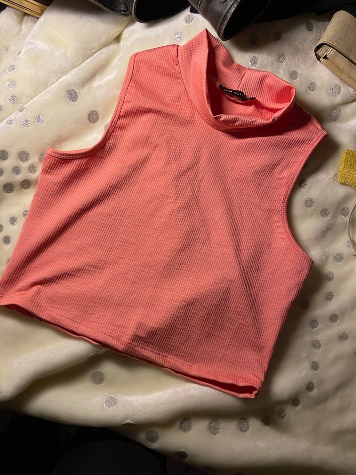 Yumuşak keten kumaştan üretilmiş, yüksek yakalı ve vücuda oturan pembe kolsuz atlet. Normal midi boyda, rahat ve şık günlük kullanım için uygundur.