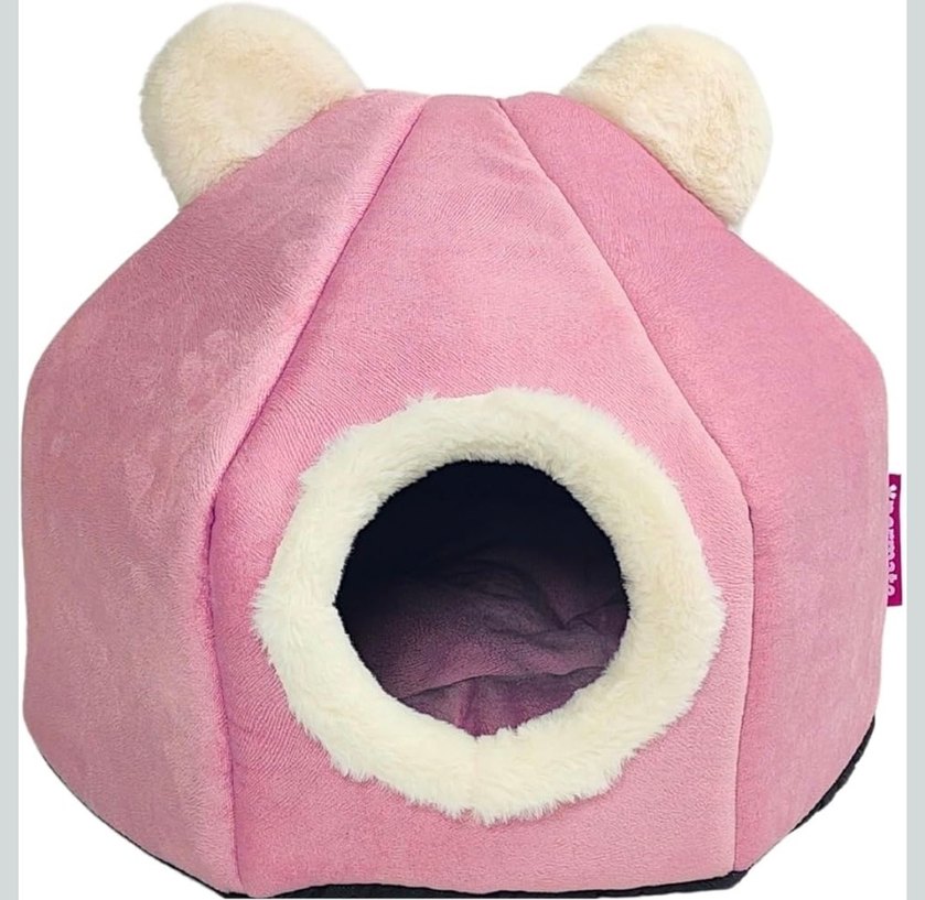 Yuvarlak girişli ve peluş kulaklı, yumuşak pembe kedi evi, kediler için rahat bir dinlenme alanı sağlar. İçerisinde pembe yastığı da bulunur. Çok az kullanıldı kedim içine 2 3 kere anca girmiştir.