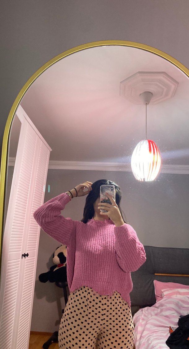 Pembe Yumuşak Örgü Kadın Kazak