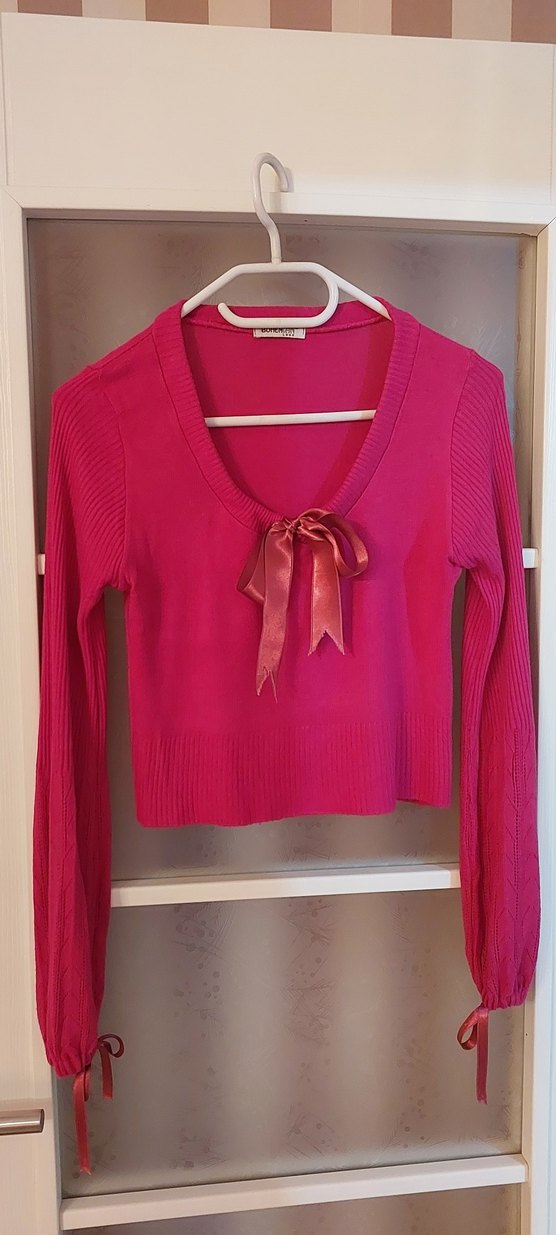 Pembe yuvarlak Yaka Fiyonklu Kadın Triko