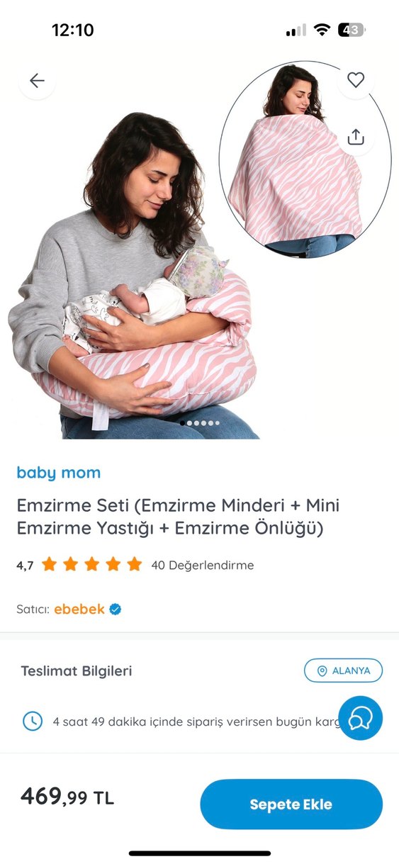 Hiç emzirmedim yeni ürün pastel pembe zebra desenli emzirme minderi, mini yastık ve önlük içeren konforlu emzirme seti.