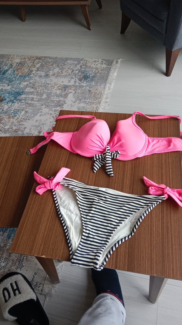 Pembe askılı üst ve zebra desenli mini alt kısmıyla, cesur athleisure tarzını plajda zahmetsiz şıklıkla birleştiren bikini takımı. not. bikini bölgesinde ufak tefek renkler mevcuttur. görsellerde vardır.