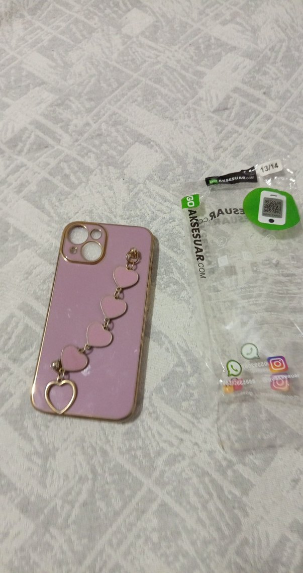 Pastel pembe renkte, kalpli zincir detaylı bohem tarzda telefon kılıfı. Telefonunuza şık ve dekoratif bir görünüm kazandırır.