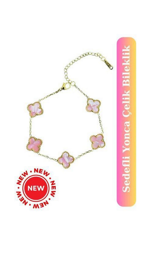 Zincir detaylı, pastel pembe çiçek motifli kadın bilekliği, minimalist ve streetwear tarzıyla günlük kullanıma uygun.