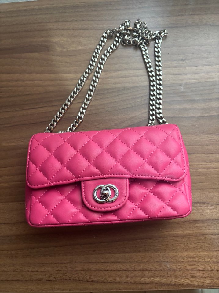 Pembe deri kadın çanta, zincir askı ve kapitone detaylarıyla günlük kullanım için şık ve modern bir tasarıma sahiptir. Üründe defo görülmedi iade yoktur bilginize