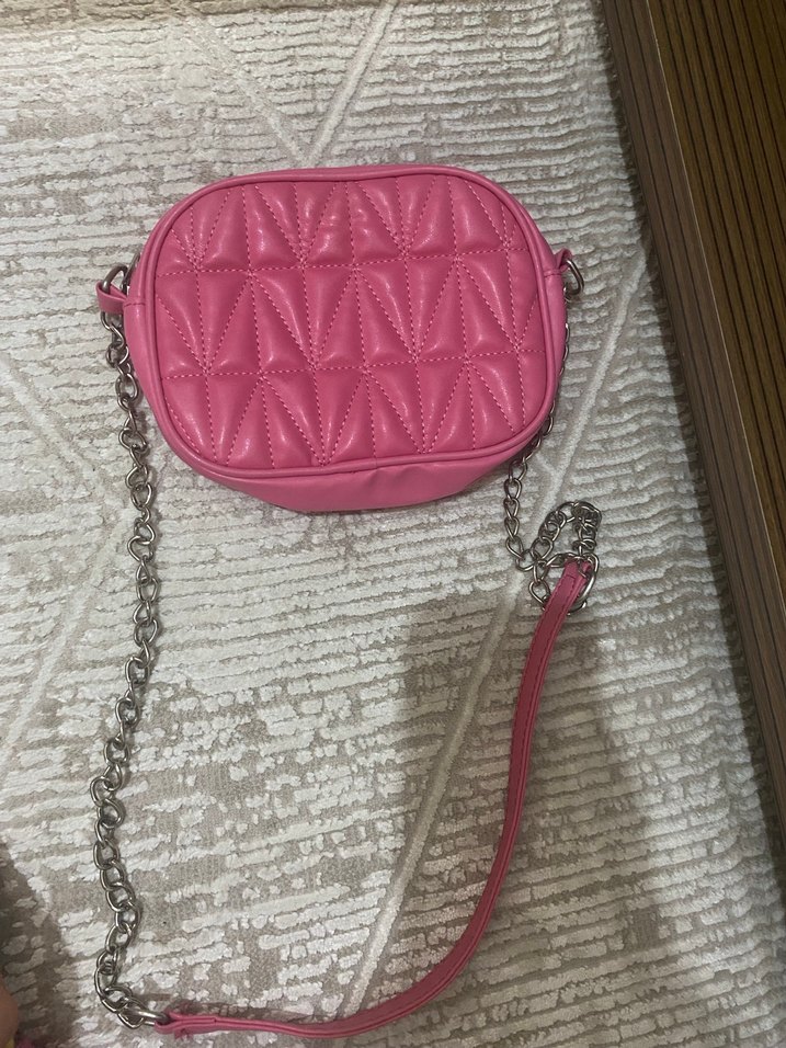Pembe renkte, nakışlı desenli ve zincir detaylı kadın çantasıdır. Sentetik kumaştan üretilmiş, günlük kullanıma uygundur.