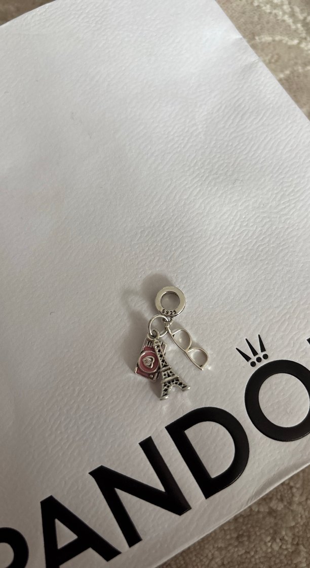 Pembe Zincir Detaylı Paris Temalı Kadın Charm