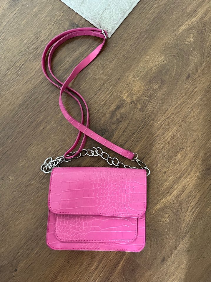 Pembe Zincir Detaylı Yılan Desenli Deri Çanta