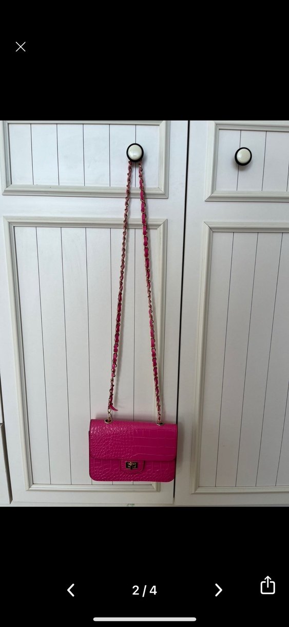 Pembe Zincir Detaylı Yılan Desenli Deri Çanta
