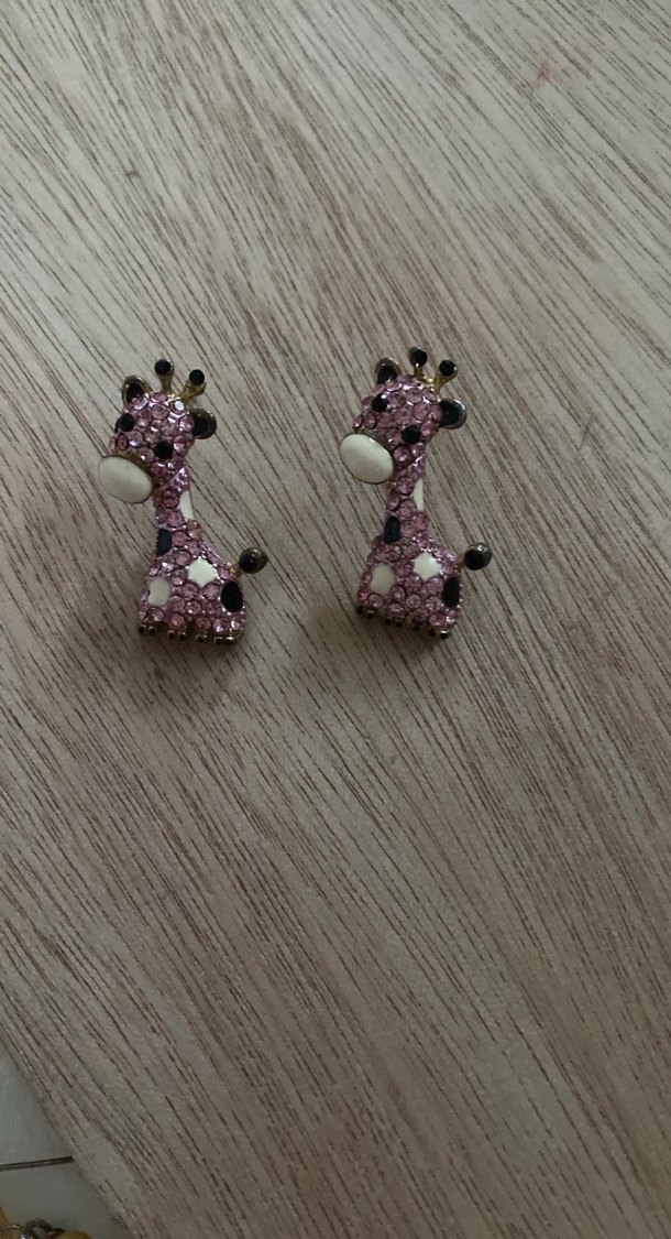 Pembe Zürafa Desenli Mini Küpe