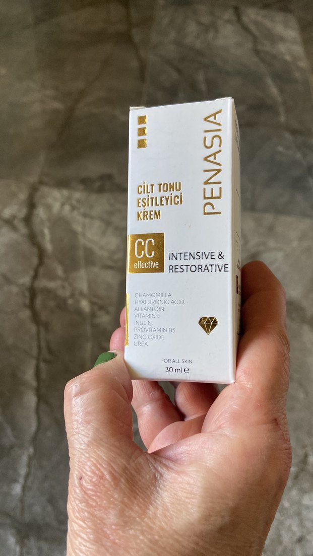Penasia CC krem, açık camel renginde, papatya, hyaluronik asit, provitamin B5 ve çinko oksit gibi içeriklerle cilt tonunu eşitler. Tüm cilt tipleri için uygundur.