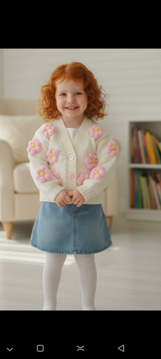 penbe papatyalarla süslenmiş hırka